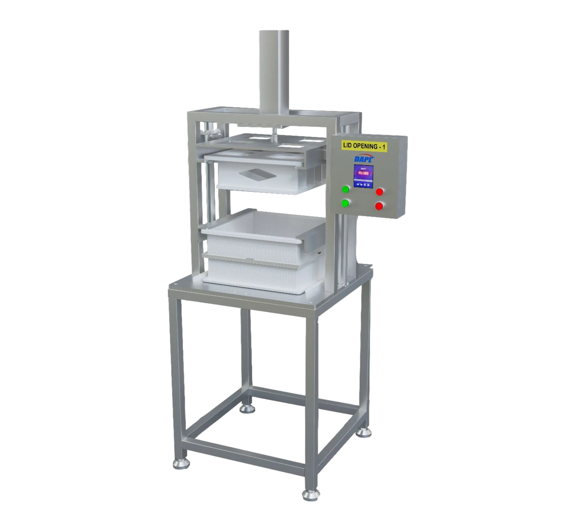 This machine automates the removal of lids from cheese moulds after pressing or brining. It enhances hygiene, consistency, and significantly reduces manual effort