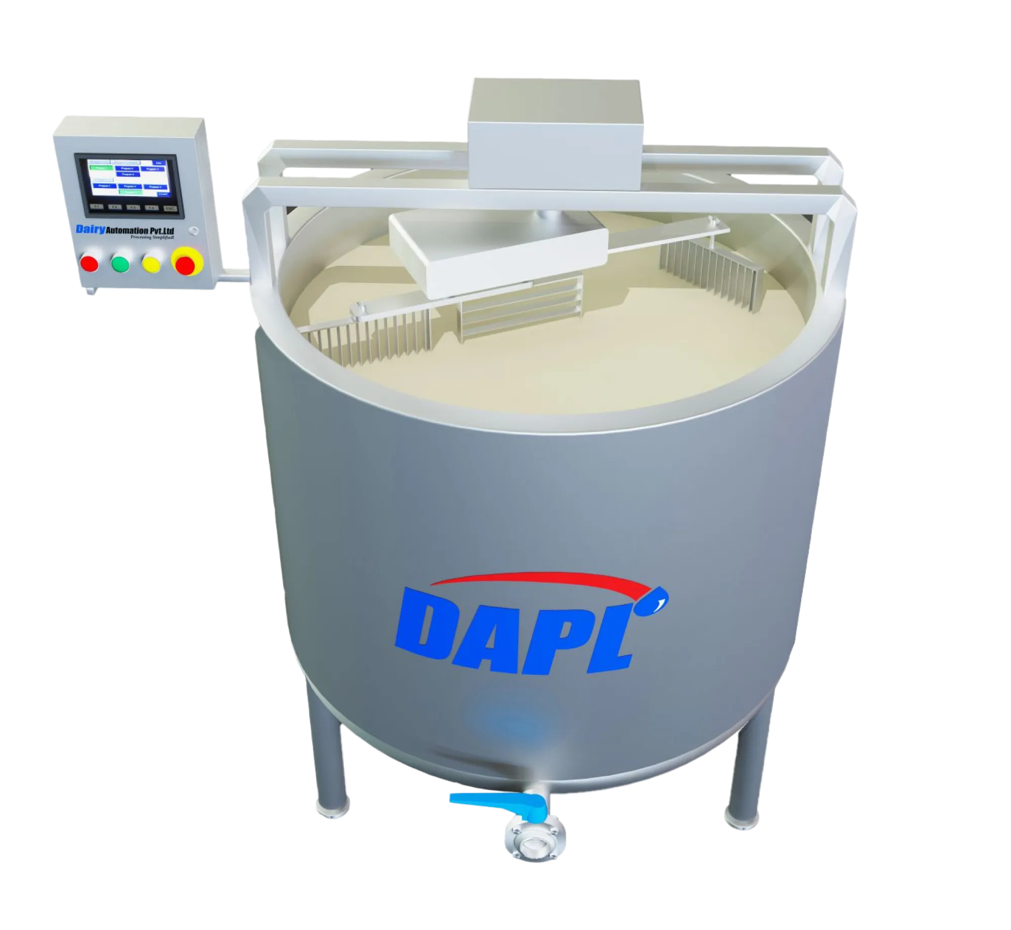 The Paneer-o-Matic is DAPL’s flagship solution for fully automated paneer coagulation. Designed for scalability, hygiene, and consistent output, it enables continuous production with minimal manual handling.
