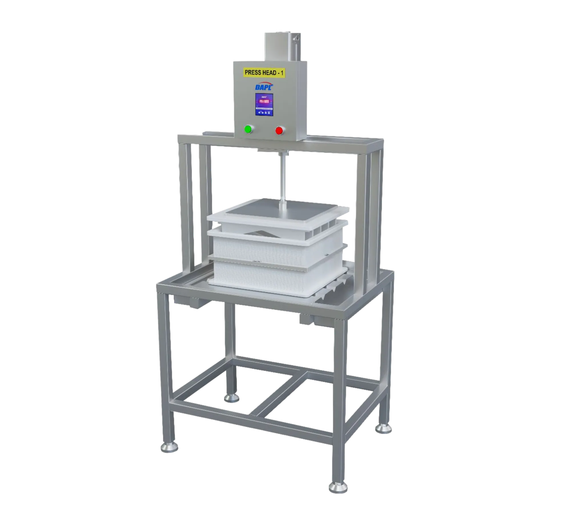 DAPL’s Mould Pressing Machine is designed to apply uniform, controlled pressure on paneer moulds for optimal moisture reduction, texture, and block consistency. Built for hygienic, small to medium-scale production, it ensures repeatable results with minimal manual handling.