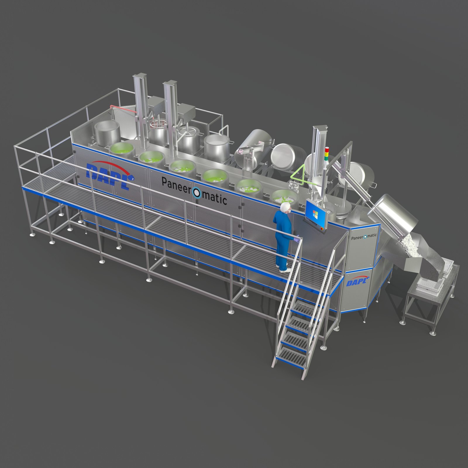 The Paneer-o-Matic Automated Paneer Coagulator is a patented rotary system that enables continuous, fully automated paneer production with precise control, superior hygiene, and high yield, adding value through reduced labour, consistent quality, and process efficiency.