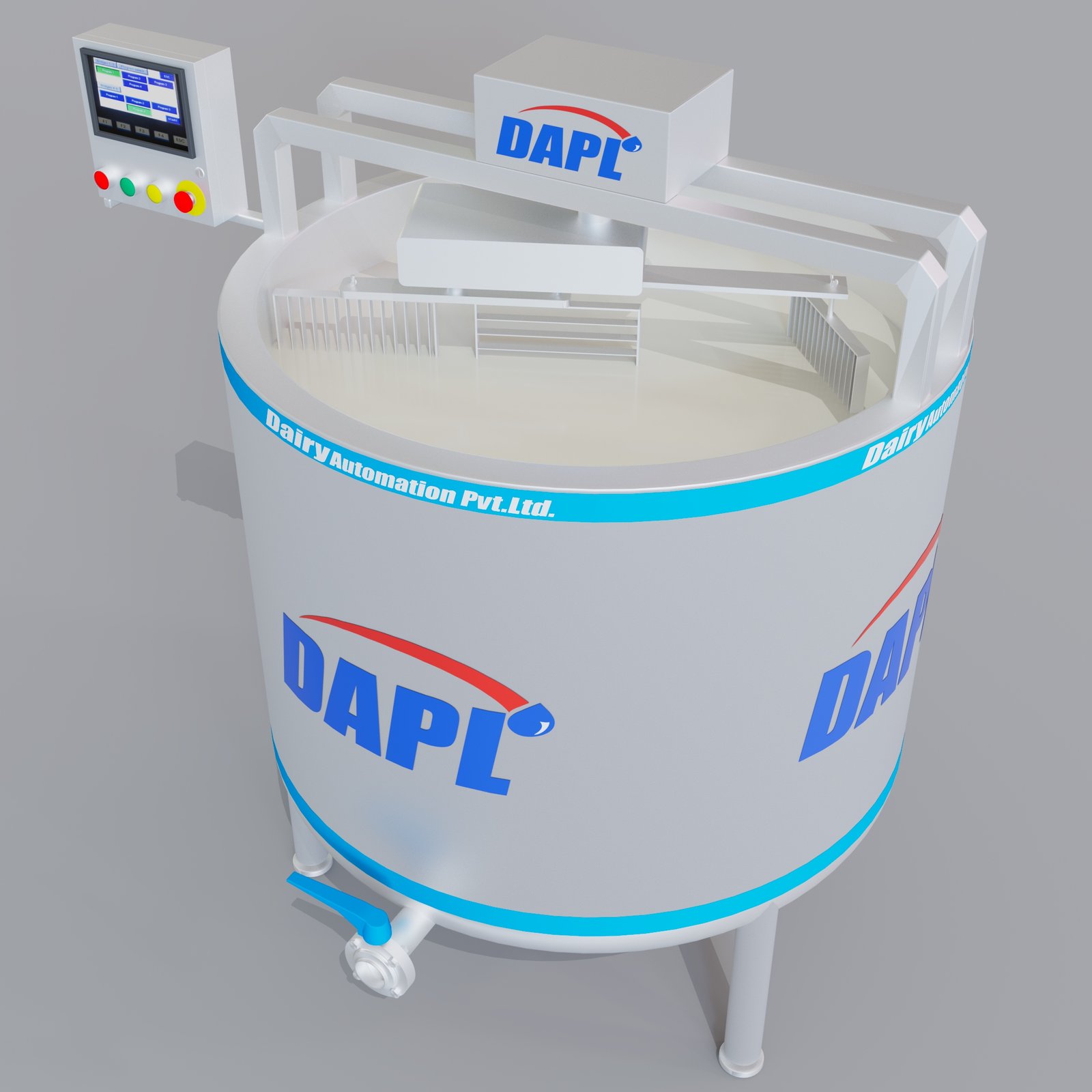 - Integrated curd cutting and stirring mechanism with variable speed drives.