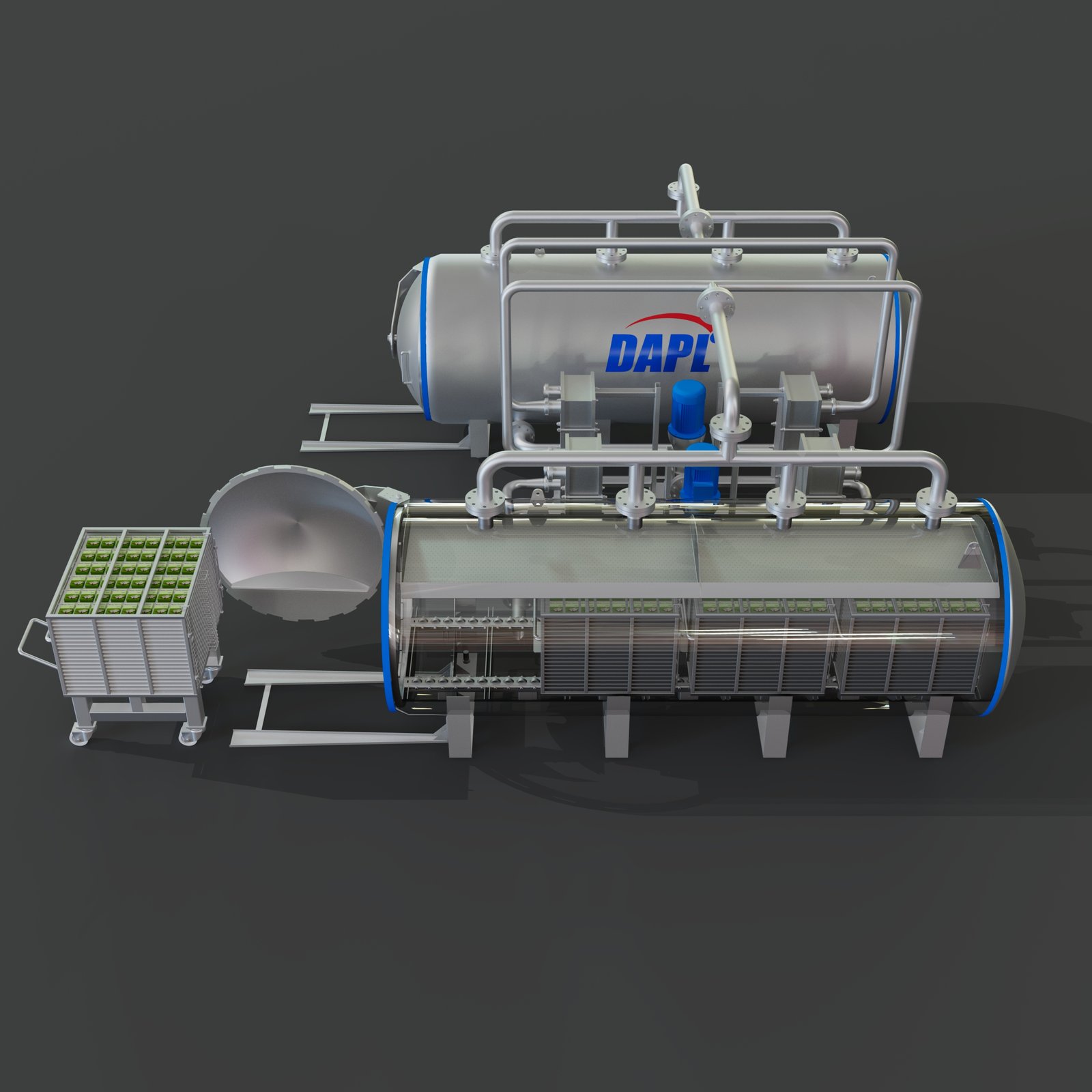 The steriliser is designed to extend the shelf life of packed paneer to 45–60 days through a controlled hot water shower and cooling cycle. This post-packaging system ensures product safety, prolonged freshness, and hygienic handling without compromising texture.